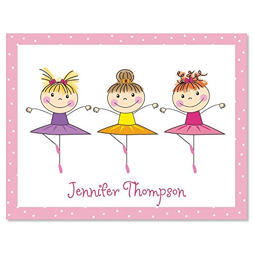-. Feature : Personalized Note Cards - Set of 24 with white envelopes / Our blank-inside cards are 4 1/4" x 5 1/2", quality stock, and come in a gift package. / A trio of winsome, hand-illustrated ballerinas dances above your name, giving all your notes a look of celebration. / Specify 1 line, up to 12 characters and spaces. / Please Note: We are unable to P.R.Int foreign characters in personalization.