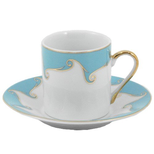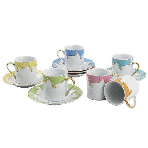 -. Title : Art Deco Gold Leaf Waves Porcelain Espresso Set 12 Pieces