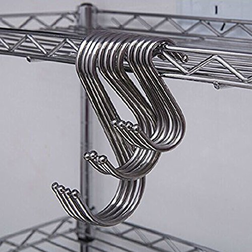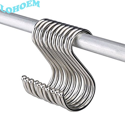 LOHOME S Shaped Hooks, Pack of 20 PCS Stainless Steel Metal Hooks Kitchen Pot Pan Hanger Clothes Storage Rack (Large)