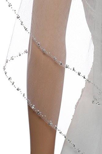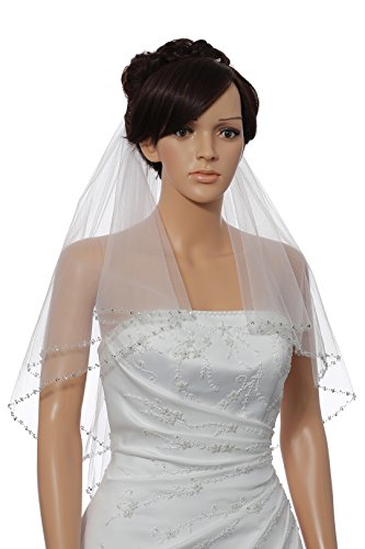 Product Description2T 2 Tier Silver Pearl Crystal Beaded Edge Veil Veil Fingertip Length 36"0
