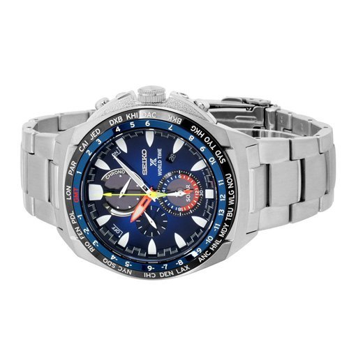 쿼츠,10기압 방수,캘린더(날짜 요일)고, 24시간계,크로노그래프,스몰 세컨드,월드 타임,파워 리서브,솔라,컬러:블루(문자판)고, 실버(벨트)
