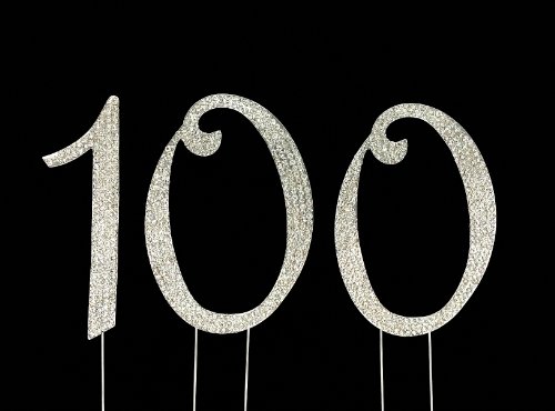 Large 100th Birthday Cake Topper with Sparkling Rhinestone Crystals - 4 1/2