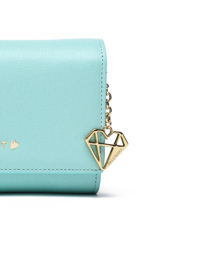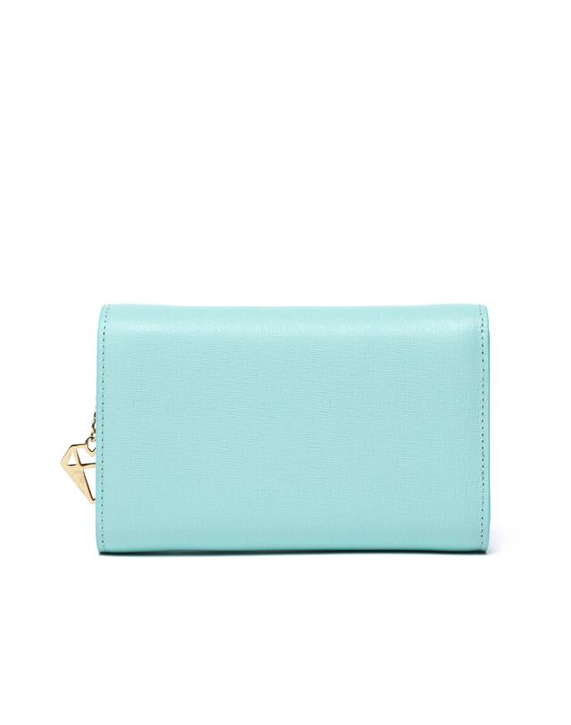 깔끔한 솔리드 컬러감에 금장 쁘띠 다이아몬드 장식으로 포인트를 준 심플한 외관의 중지갑입니다.