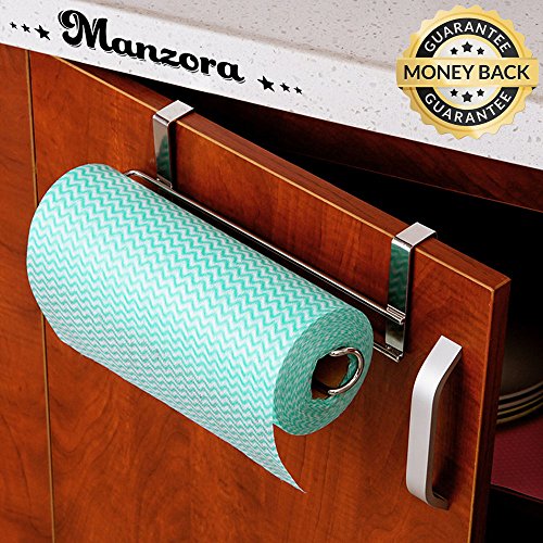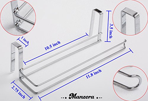 PRODUCT DESCRIPTION: Product name: Paper towel holder Material: Stainless Steel Color: Silver Total length: 11.8" Height: 3.54" Depth: 2.7" Other Detailed size: Please refer to the pictures. Weight: 0.55lbs FEATURES: Fit US standard kitchen paper towels, thickness of the cabinet is less than 0.98in. Simple and Practical design for your kitchen paper towel. Suit for using on both the inside outside of kitchen cupboards. Do not need drill holes, no screws, very easy to install and use. Durable, sturdy, keep shining after a long-term using. Keep your kitchen room organized and in order. NOTE: Due to lighting effects, monitor's brightness, contrast settings etc, there could be some slight differences in the color tone of the pictures and the actual item. Please allow 1-2mm differs due to manual measurement. Check the detailed size of the paper towel holder if it fits your cabinet before your purchase. Thank you. PACKAGE INCLUDED: 1pc * Kitchen Paper Hanger (not include kitchen roll paper) MANZORA THANK YOU for your coming, please do not hesitate to email us for any questions. 0 |