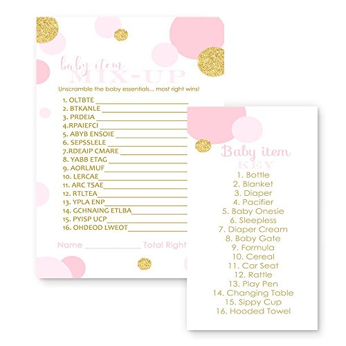 Pink and Gold Baby Shower Game Word Scramble ( 25 Pack )