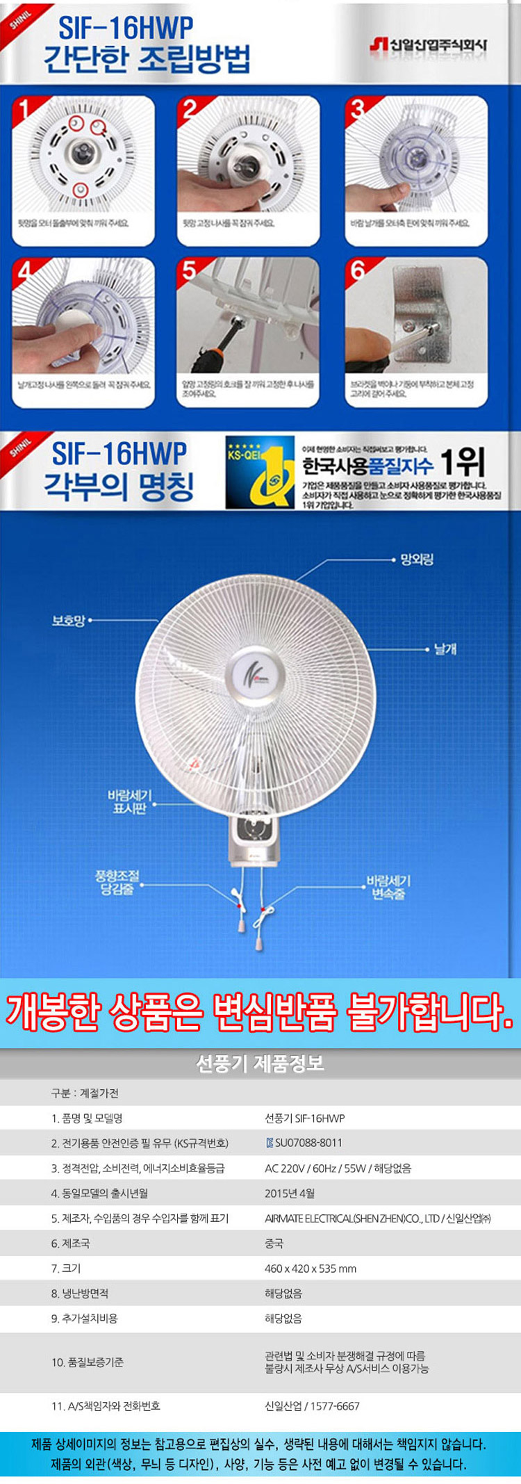 Shinil _ Wall fans SIF-16HWP 40cm naengpunggi