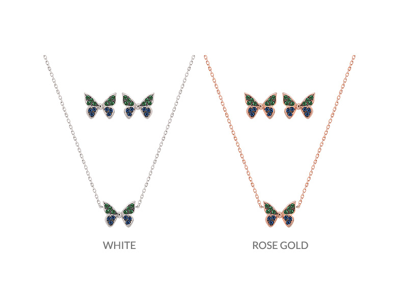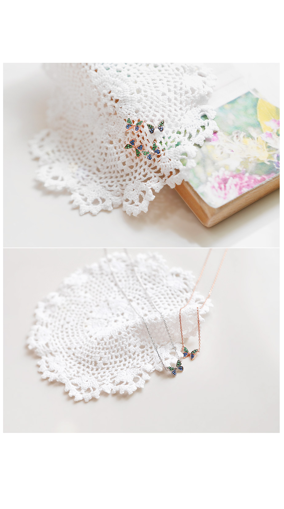 다른 컬러감의 큐빅이 믹스매치 되어 유니크한 매력을 가져다주는 버터플라이 큐트 세트