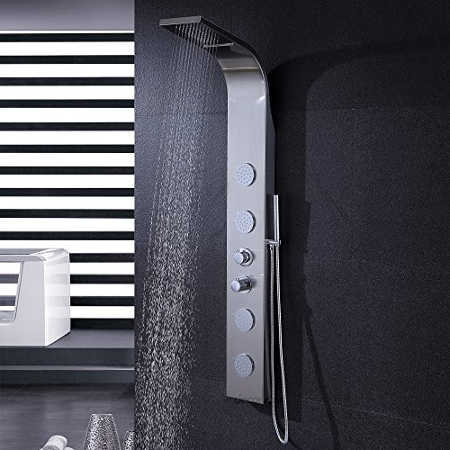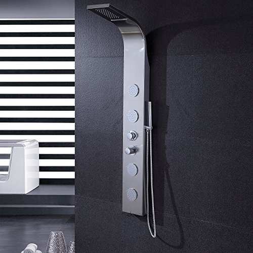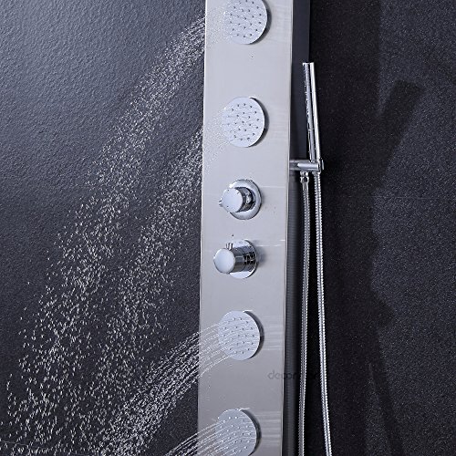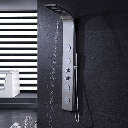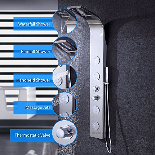 Decor Star 031-SS-V2 61" Stainless Steel Rainfall Waterfall Shower Panel Rain Massage Tower System Thermostatic Faucet with Jets