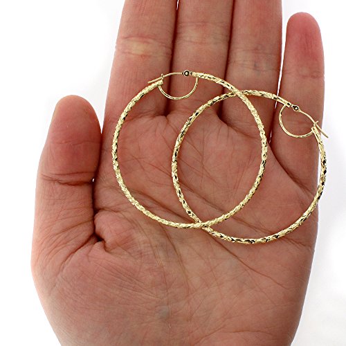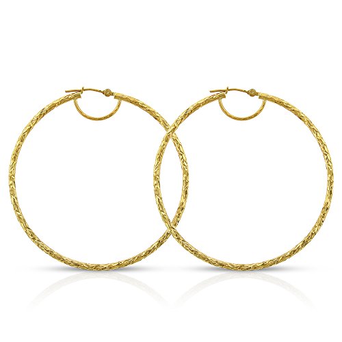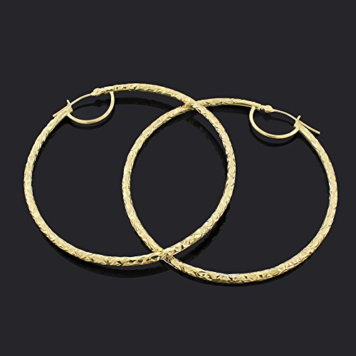 -. Title : 14k Yellow Gold Womens Fancy Diamond Cut Hammered Round Tube Hoop Earrings 2"