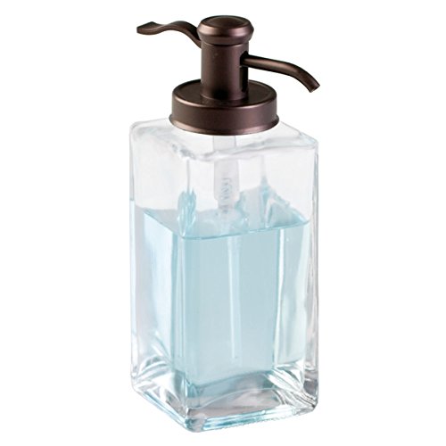 mDesign Liquid Hand Soap Glass Dispenser Pump Bottle for Kitchen, Bathroom | Also Can be Used for Hand Lotion & Essential Oils - Square, Clear/Bronze