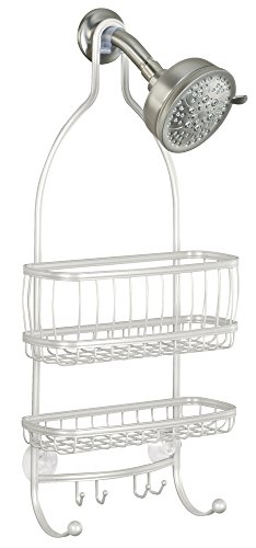 This York Lyra Shower Caddy bring classic American style to your shower space. Its 2 shelves can accommodate larger bottles and have hooks for towels, loofahs and brushes.