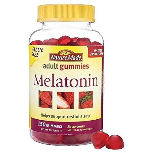 -. Binding : Health and Beauty -. Brand : Nature Made -. IsAdultProduct : 0 -. Label : Nature Made -. Manufacturer : Nature Made -. PackageQuantity : 1 -. ProductGroup : Health and Beauty -. ProductTypeName : HEALTH_PERSONAL_CARE -. Publisher : Nature Made -. Studio : Nature Made -. Title : Nature Made Melatonin Adult Gummies, Strawberry, 150 ea