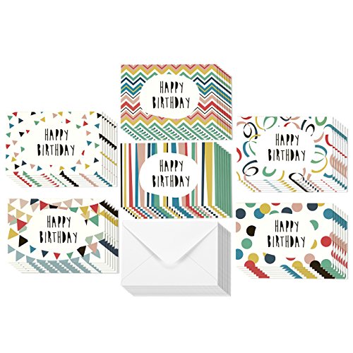 This assorted pack of 48 birthday greeting cards will prepare you for all your card-sending needs! Cut the hassle of rushing to the store and overpaying for cards. This pack contains 48 blank cards to include your custom messages for business and personal use. Each card features one of 6 colorful retro pattern designs. Make a statement with these birthday cards made of high-quality card stock that feels thick and sturdy. Each card measures at 4 x 6 inches and comes with corresponding envelopes. Make sure you have plenty of greeting cards on hand for when occasions arise.