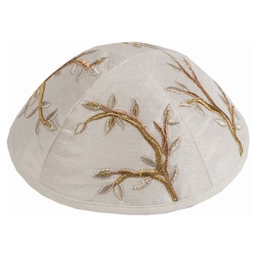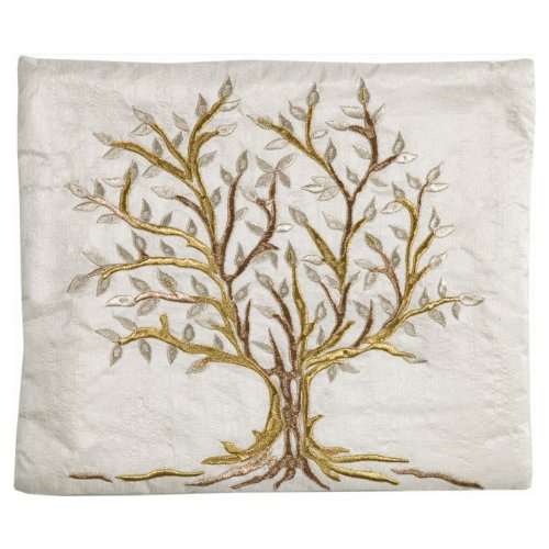 Gold and Silver Tree of Life Raw Silk Yair Emanuel Tallit with Matching Bag and Kippa