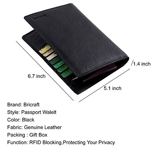 -. Binding : Apparel -. Brand : Bricraft -. ClothingSize : one size -. Color : Black -. Department : mens -. EAN : 0602130409533 -. Feature : ✔ SAFE - Customer Tested and Recommended, Protect Your valuable data - Block RFID Readers from Scanning Your Credit cards, Debit cards, Banking Information, Smartcards, RFID driver's licenses, Passport and other RFID Cards / ✔ COMFORTABLE - Feel secure knowing that wherever you are in the world, your personal information cannot be compromised by electronic pickpocketing thieves. It's a simple and effective way to easily protect yourself against the growing risk of identity theft / ✔FASHIONABLE - 7 credit card slots, 1 passport slot and 3 currency pockets.Top Grain Leather with luxury looking and feeling.Same stitching matches the same color of wallet. It is fashionable European & America style / ✔GENUINE - Protects all magnetic stripes and EMV chips from wear and tear. Made with the Finest Grade Soft, Smooth Embossed Pebble Leather 7 RFID LOCK Credit Card Slots, Each can fit 1 card. Convenient feature for those who travel / ✔GUARANTEED - We know you'll love our wallet as much as we do, if you're not 100% SATISFIED, let us know and we will make things right: full refund or a free replacement, whichever you would prefer -. ProductGroup : Apparel -. ProductTypeName : ACCESSORY -. Size : One Size -. Title : NFC RFID Blocking Passport Travel Wallet Genuine Leather Bifold Case Cover Holder -. UPC : 602130409533