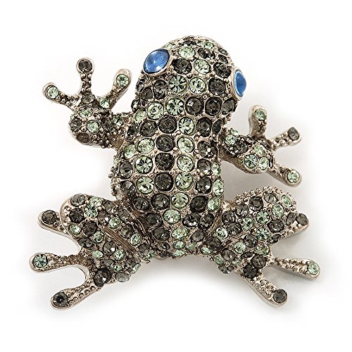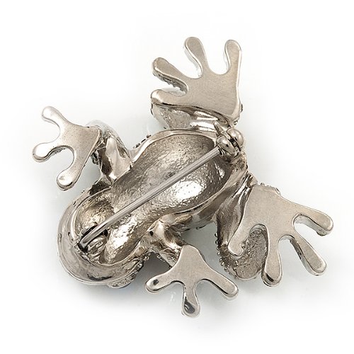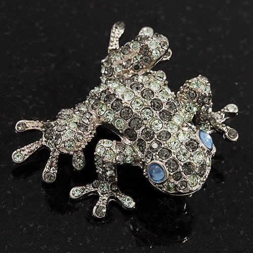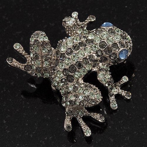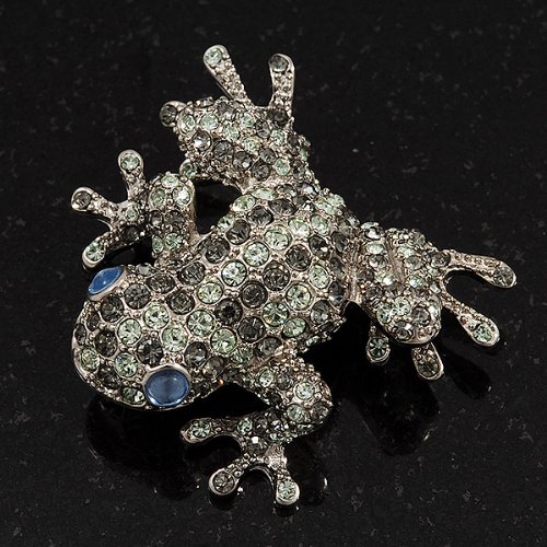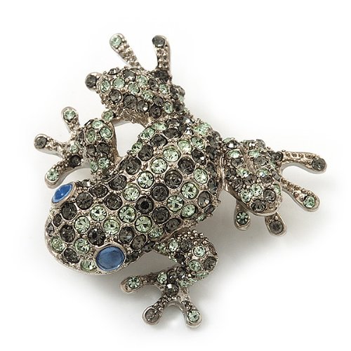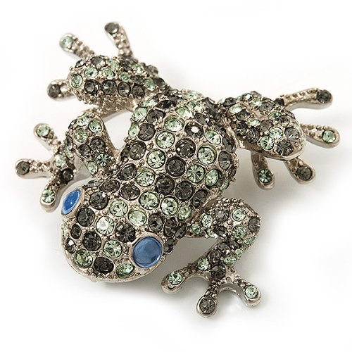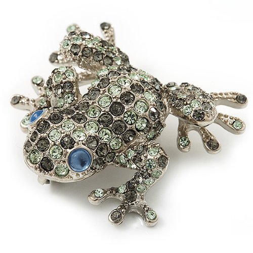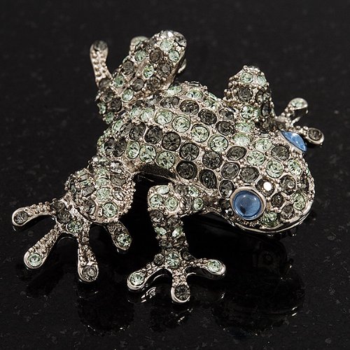 -. Title : Swarovski Crystal 'Frog' Brooch In Rhodium Plated Metal (Light Green/ Grey)