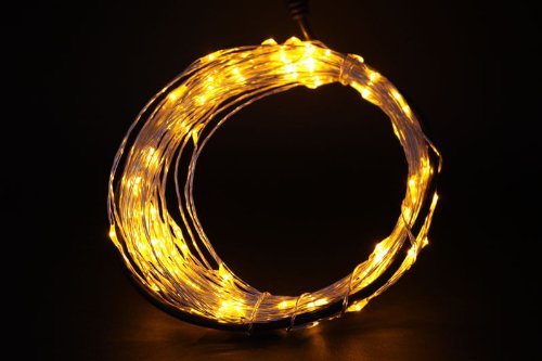 -. Feature : Power: 12V DC. Modes: Steady on, Over 20,000h Life Span. After hours of use, they are completely safe to touch without risk of burns. The LED Starry Lights are safe for children over three years and for pets. / Led String Light apt for both indoor and outdoor settings.The copper wire has a lacquer coating that makes the whole strand of lights water resistant, though is preferable not to soak them in water. The copper wire lights can stay outdoors on a rainy day, provided that the power adapter is protected with a plastic cover. The LED String IP-65 is impervious to dust. These starry lights on copper wire do not break easily. / Its flexible lights string wire is easy to shape and will allow you to "sculpt" the light set around whatever projects you may choose. / With 100 individual LEDs, safety voltage, LEDs on durable and heat-resistant copper wire. / 6-mode dimmer connect, lighting easy control!!!