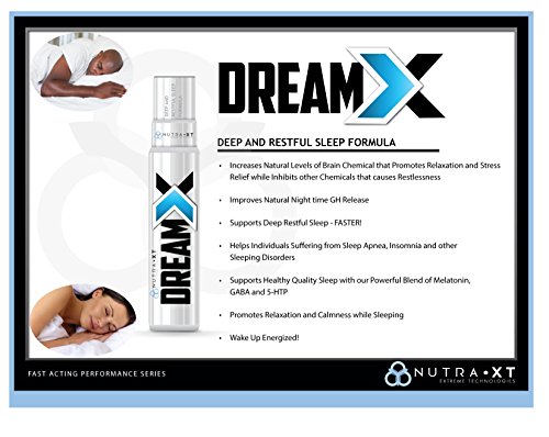 -. Binding : Health and Beauty -. Brand : NutraXT -. Department : unisex-adult -. EAN : 0854637004432 -. Feature : DreamX Spray Supports Deep Restful Sleep, Helping YOU Fall Asleep FASTER and wake up Refreshed! / Provides Support for Sleep Apnea, Insomnia and other Sleeping Disorders / DreamX Oral Spray provides the Fastest Absorption rate, up to 98%! - Manufactured in a USA FDA Certified Lab, Non-GMO, No Paraben / DreamX Powerful Ingredients, Melatonin, 5-HTP, GABA, are absorbed directly into the bloodstream, Improving YOUR Quality of Sleep. / Best Value Sleep Solution - Promotes a Healthy Sleep Cycle so you wake up ENERGIZED! -. IsAdultProduct : 0 -. Label : GenTec -. LegalDisclaimer : The Food and Drug Administration have not evaluated statements about or describing DreamX Sleep-Insomnia Support. The product is not intended to diagnose, treat, cure, or prevent any disease -. Manufacturer : GenTec -. MPN : DRXT33 -. PackageQuantity : 1 -. PartNumber : DRXT33 -. ProductGroup : Health and Beauty -. ProductTypeName : HEALTH_PERSONAL_CARE -. Publisher : GenTec -. Studio : GenTec -. Title : FASTEST ABSORPTION (>98%) Melatonin, 5-HTP, GABA Sleep Support Spray - Promotes FAST Deep Restful Sleep (Up to 33 Nights) Natural and SAFE - Wake UP with No Grogginess! -. UPC : 854637004432
