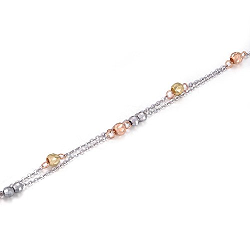 -. Binding : Jewelry -. Brand : MaBelle -. Department : womens -. Feature : The Beads Are Made By Rose And Yellow Gold / The Rest Of The Chain Are Made By White Gold / It Could Be Wear As Either Anklet Or Bracelet / The Length Of The Anklet Is About 9 Inches / Stamped 585 For 14K -. Label : MaBelle -. Manufacturer : MaBelle -. Model : B06144K -. ProductGroup : Jewelry -. ProductTypeName : FINENECKLACEBRACELETANKLET -. Publisher : MaBelle -. Studio : MaBelle -. Title : 14K Tri-Color Gold Yellow And Rose Beads Anchor Chain Anklet (9')