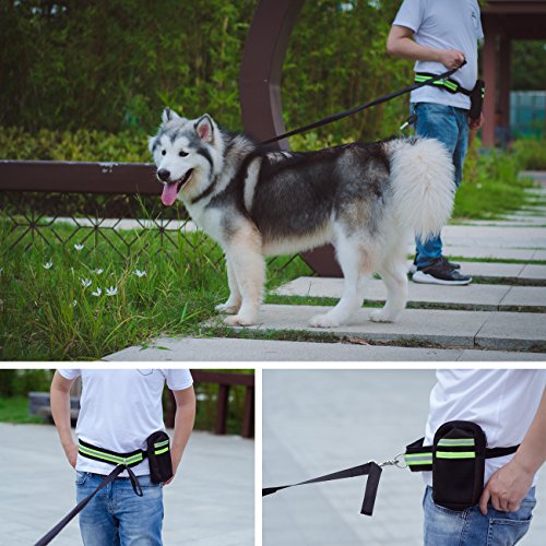 Happy Polly Dog Walking Harness Leash with Waist Belt If you would like to enjoy the morning walk as well as walking your dog safely, we recommend a high quality leash to satisfy your wish. This leash is made of high quality material to ensure the strength needed to resist years' of repeated use, and to reassure safety while running. It is a machine-sewn belt with precise stitching and high resistance of wearing. Features: With the harness leash the dog will be well attached to your control, you can use it for walking while walking or running. The waist belt can be easily adjusted to fit your own size. A small pocket attaches to the center of the belt to store the small objects. Equipped with reflective tape to increase visibility for ensuring security in the early morning or in the dark place. The leading part is made of double layers of fabric ¡¡ Specifications: Material: Woven belt, thick "sandwich" fabric The length of the leash: approx.120cm / 47.2" Weight: approx.241g/0.53lb Color: Black 100% Brand New Suitable for: The medium-sized or large dog, who can run with the man. Package Includes: 1 x Walking dog leash kit 1 x Original packing
