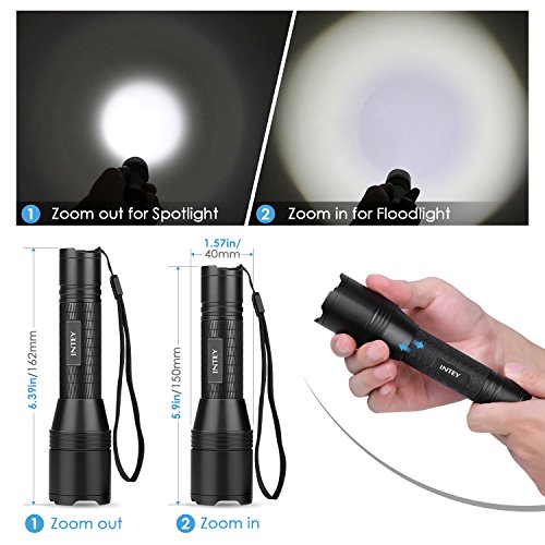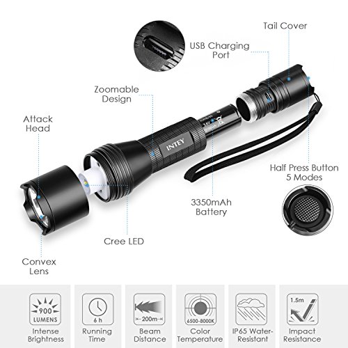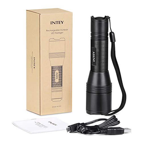 INTEY Tactical Flashlight USB Rechargeable LED Flashlight Zoomable Waterproof 900 Lumens Torch Light