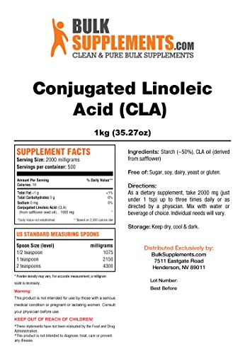 (BulkSupplements)/Sports Nutrition/Fat Burners Thermogenics/DIRECT FROM USA/Bulksupplements Pure CLA (Conjugated Linoleic Acid) Powder (1 kilogram)