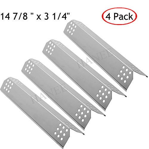 HANEE KS738 Stainless Steel Grill Heat Shield Plate, Heat Tent, Burner Cover Flame Tamer, Gas BBQ Grill Replacement Parts for Master Forge 1010037, Nexgrill, 14 7/8 inch x 3 1/4 inch, Set of 4