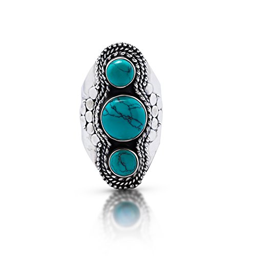 -. Title : Synthetic Turquoise 3 Stones Vintage Gipsy Ring 925 Sterling Silver US Size 7 8 9