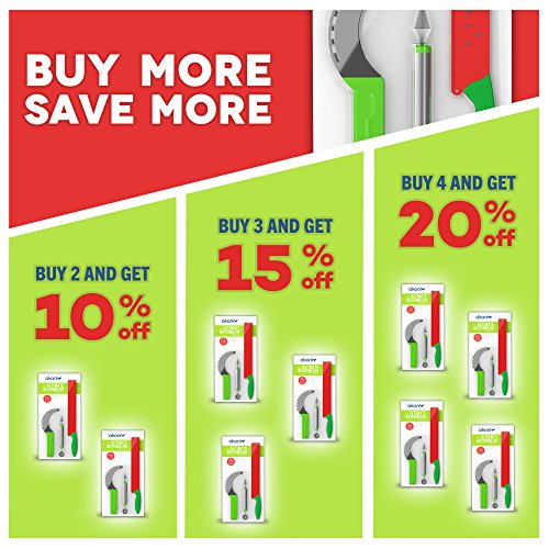 - EFFORTLESSLY PREPARE & PRESENT - A single cut of this 11.5 inch blade halves watermelons like a hot knife gliding through butter. Make short work of perfect portions using the durable slicer and its ergonomically designed, rubber-coated handle. Get creative and sculpt, ball and carve intricate designs with the FREE multi-purpose baller tool. Melons used to be just food. With Akoni, they can be art.