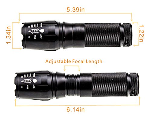 XML-T6 LED, Ultra Bright 1500 lumen;ADJUSTABLE FOCUS: Intense Spotlight for long range observation can up to 600 feet, Circle Floodlight for large area illumination