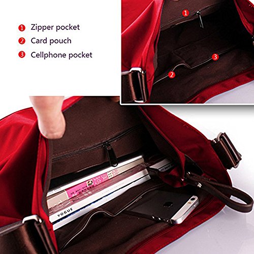 - STRUCTURE: This handbag has 5 pockets in total, 1 back zip pocket outside, you can hold your small item, such as your phone, key, or card; inside the large main compartment, there are 2 zip pockets and 2 slip pockets, perfect for daily use, help you will organize all your items.
