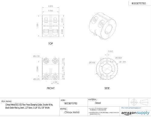 Climax Metal D2C-050 Two-Piece Clamping Collar, Double Wide, Black Oxide Plating, Steel, 1/2" Bore, 1-1/8" OD, 7/8" Width