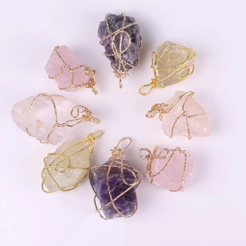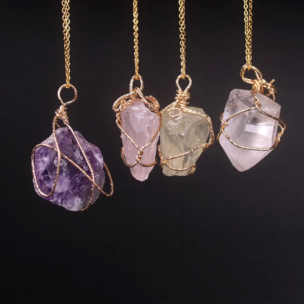 purple,green ,yellow,white and pink:Rose Quartz crystal Necklace