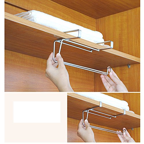 SUS304 Stainless Steel Kitchen Paper Hanger Sink Roll Towel Holder Hanger Organizer Rack, Under Cabinet without Drilling