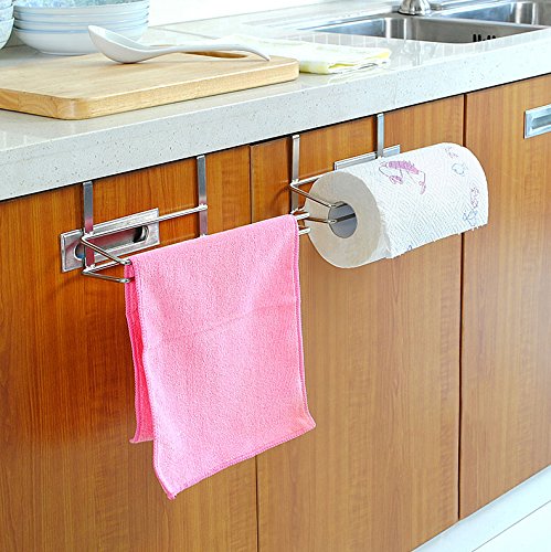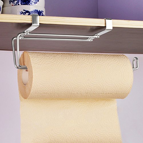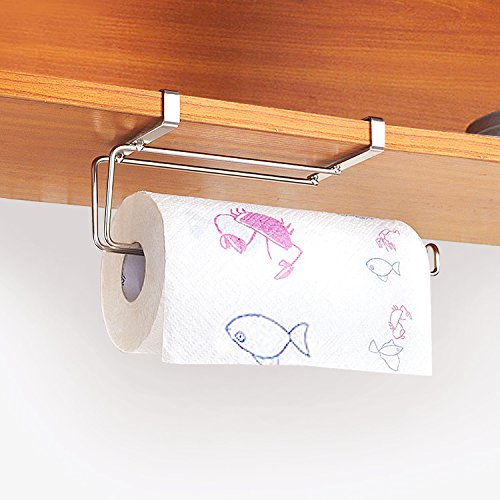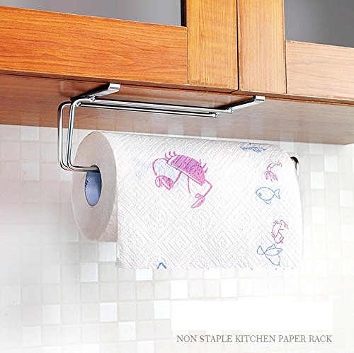 - EAST TO INSTALL AND USE: Fit perfectly on your cabinets without having to drill any holes in the cabinet door. It is easy to add and remove the paper towel rolls, curved end design let you never worry that the paper rolls will drop down.