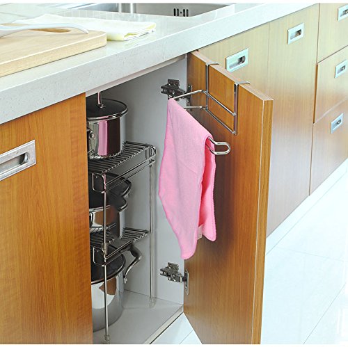 - SUS304 STAINLESS STEEL MATERIAL : This towel holder hanger organizer rack is made of SUS304 stainless steel with a light-emitting surface,more sturdy and durable,protect the rack from moisture/oil/acid and alkali corrosion in cooking environment.