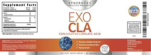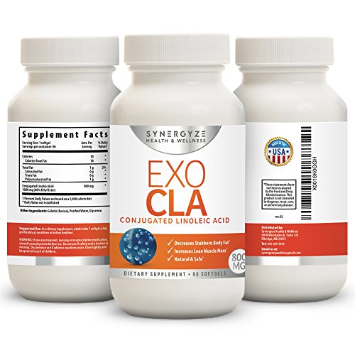 -. Binding : Health and Beauty -. Brand : EXO CLA -. EAN : 0065214324977 -. Feature : -DECREASES STUBBORN BODY FAT -our exo cla, conjugated linoleic acid is specially formulated to enhance your body's ability to reduce fat deposits / -PROMOTES A HEALTHY IMMUNE SYSTEM -the quality ingredients help support overall immune health and function / -FREE Ebook with your order. Customers that have not opted out of our follow up emails will receive our Ebook with diet, workout, and SUPER effective fitness tips & tricks! / -NATURAL AND SAFE -at Synergyze Health & Wellness we take great P.R.Ide in the quality of our health supplements / -INCREASES LEAN MUSCLE MASS -studies have shown that CLA reduces body fat while preserving muscle tissue, and may increase metabolic rate -. IsAdultProduct : 0 -. Label : Synergyze Health & Wellness -. Manufacturer : Synergyze Health & Wellness -. MPN : EC -. PackageQuantity : 1 -. PartNumber : EC -. ProductGroup : Health and Beauty -. ProductTypeName : HEALTH_PERSONAL_CARE -. Publisher : Synergyze Health & Wellness -. Studio : Synergyze Health & Wellness -. Title : Premium Quality Formula CLA | 800 mg | EXO CLA | Decrease Stubborn Fat Mass | Increase Lean Body Mass | FREE Bonus Ebook with order |90 Capsules| Improve Weight Loss -. UPC : 065214324977