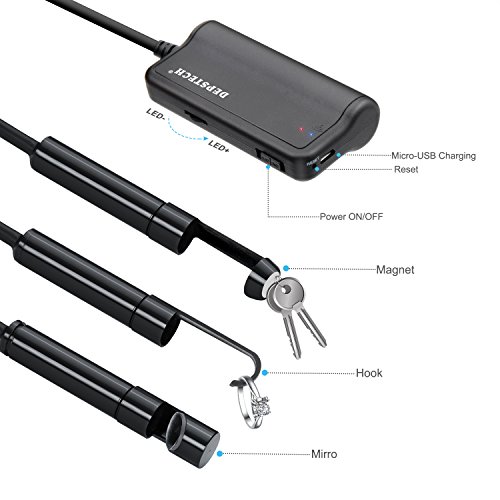 Depstech Wireless WIFI Endoscope Camera For Android and IOS Smartphone. This upgraded Depstech wifi endoscope has surpassed the traditional endoscope's using limitation for iPhone user. It can work perfectly with Android 2.3+ and IOS 6.0+ smartphone. Will be a best inspection tool for iPhone user.