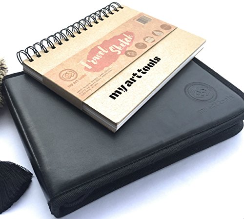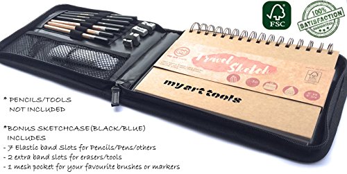 YOU WILL LOVE THIS BUY ONE GET ONE FREE - 60 Pages A5 WIRE BOUND Drawing Pad and Free Compact Travel Zipper Case (Black or Blue) with elastic pen/pencils/tools slots and an extra mesh pocket, while stock lasts