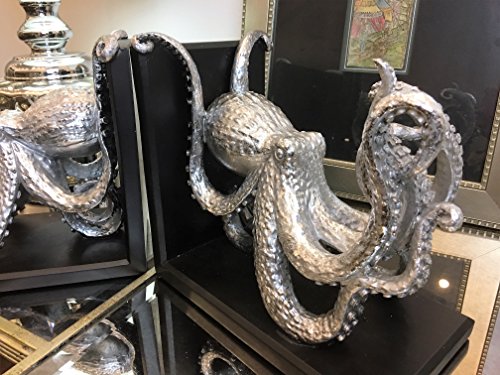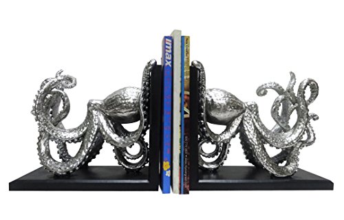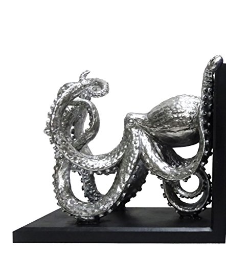 Great detail of this ocean creature from all angles. Smooth black base, contrasting the Silver finished octopus. Oversize and weight to hold larger books and magazines.