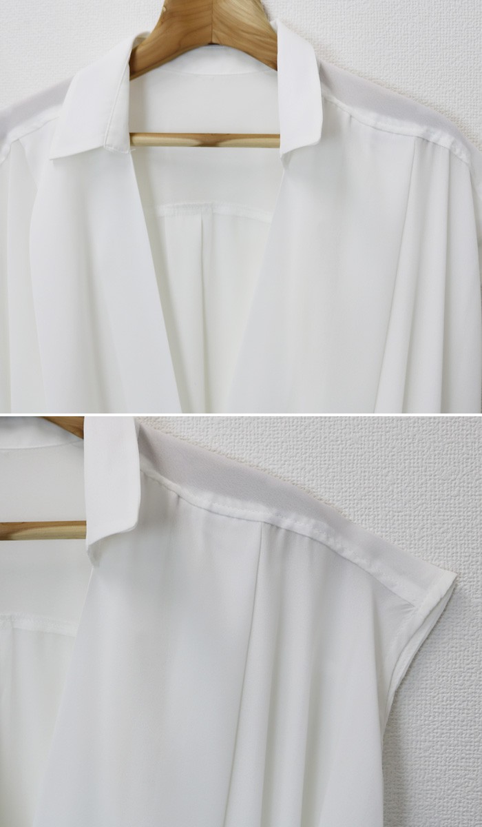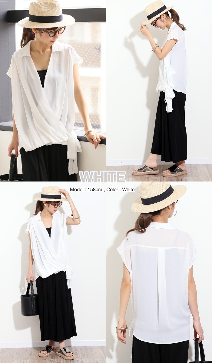 着用時はキャミやベアトップなどのインナー必須ですが、ふわっと涼しくてゆれるドレープのニュアンスが女らしい1枚!