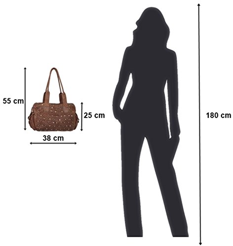 -. Feature : Unverbindliche Preisempfehlung des Herstellers EUR 199,50 je Stück / Lässige Damentaschen aus Vintage Büffelleder mit praktischen Fächern, aufwändige Used Look Verarbeitung, Applikationen geflochten und coolen Metalldekoren, 38x25x12 cm (B x H x T), BB Jessy / Obermaterial: Leder / Innenmaterial: Baumwolle mit Ledereinfassungen / Verschluss: Reißverschluss