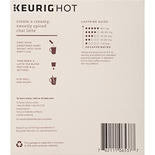 -. Feature : A creamy blend of vanilla & caramel flavors with black tea & classic chai spices / Made with milk, real tea leaves & spices / Ships in amazon certified frustration-free packaging / Designed for use with the Keurig single cup brewing system / 6 individual k-cup pods per box