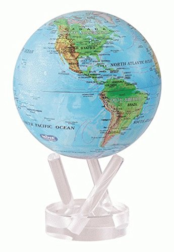 The original Relief Map features darker green and brown land contrasted with bright blue bodies of water. Shading indicates changes in elevation, while directional lines show flow of ocean currents. The MOVA Globe turns gently and silently inside a clear acrylic shell. No batteries or wires required! Simply place the MOVA globe on its stand, and your MOVA globe will come to life and start to turn when exposed to natural or artificial light.Feature