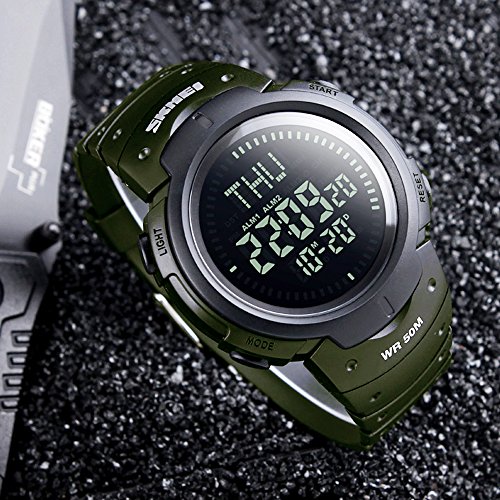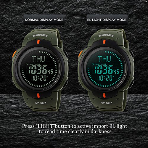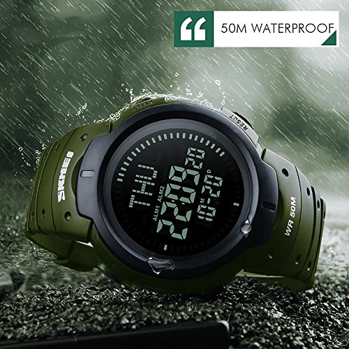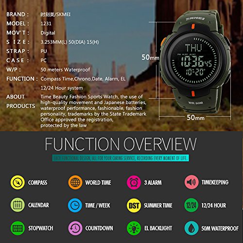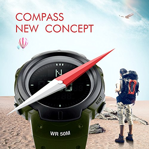 -. Title : Men's Sports Digital Watch Survival Compass Waterproof Wristwatch - Military Green