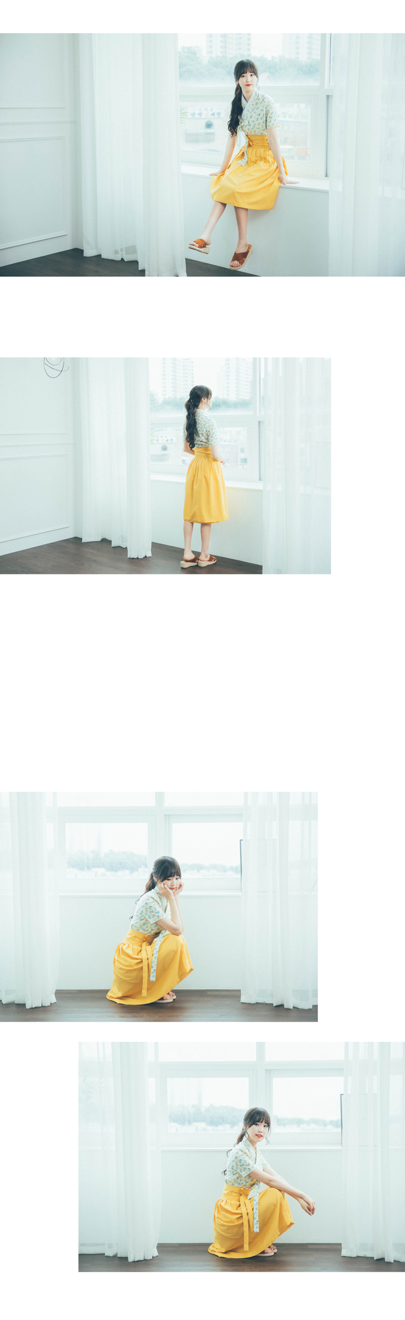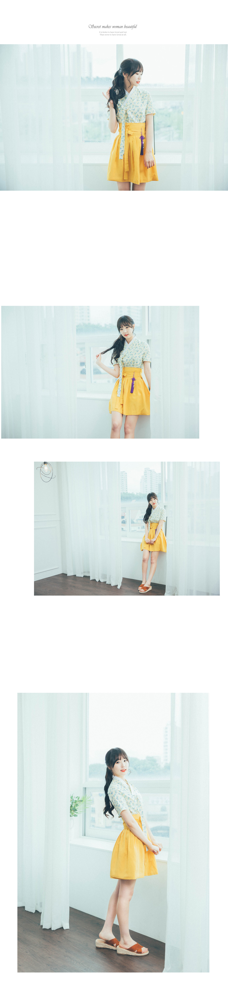 *코디 제품:옐로가든 장저고리 하늘하늘 찰랑거리는 쉬폰 원단으로 제작된 진노랑 허리치마 너무 얇은 쉬폰 원단을 하의로 사용하게 되면 안감을 덧대어도 실루엣이 비치는 등 단점이 있는데요 서리나래에서 사용한 쉬폰 원단은 일반 쉬폰 원단보다는 두께감이 톡톡해 하의에 적합한 고급 쉬폰 원단을 사용하였답니다 부드럽게 떨어지는 라인이 너무나 예뻐요. 노란색이긴 하지만 약간 톤다운된 진한 노란색이라 과하지 않고 발랄하게 입으실 수 있답니다 한여름에도 시원하게 입으실 수 있는 허리치마로, 취향에 따라 숏기장/롱기장을 선택해서 입어보세요 ![]() ![]() ![]() ![]() |