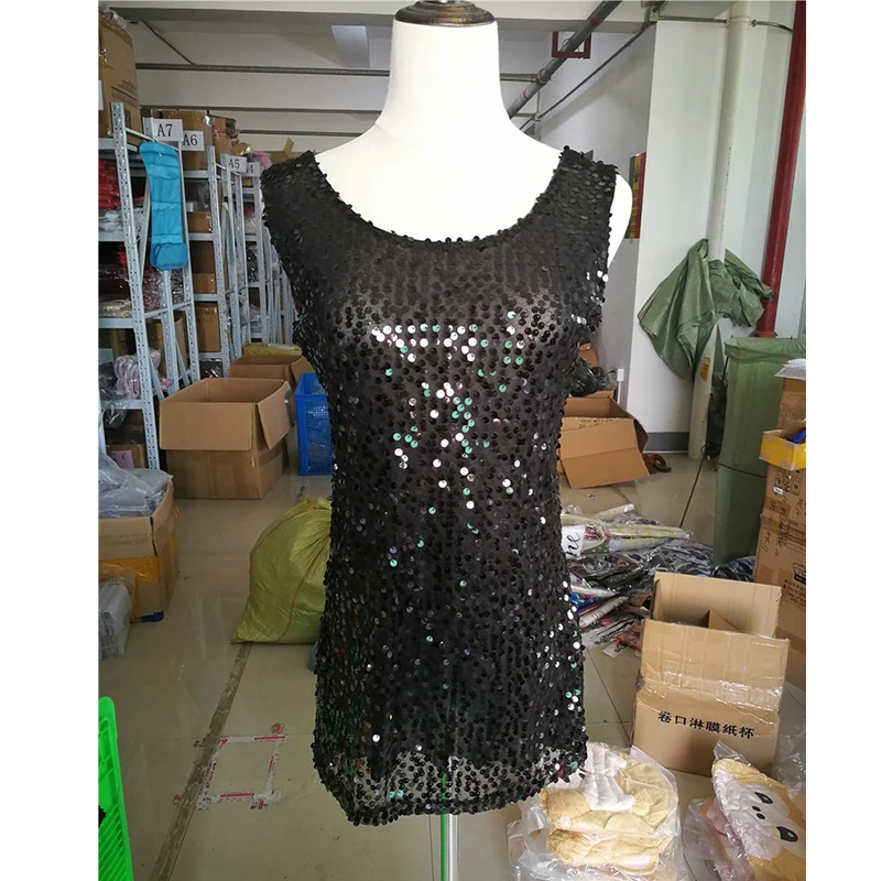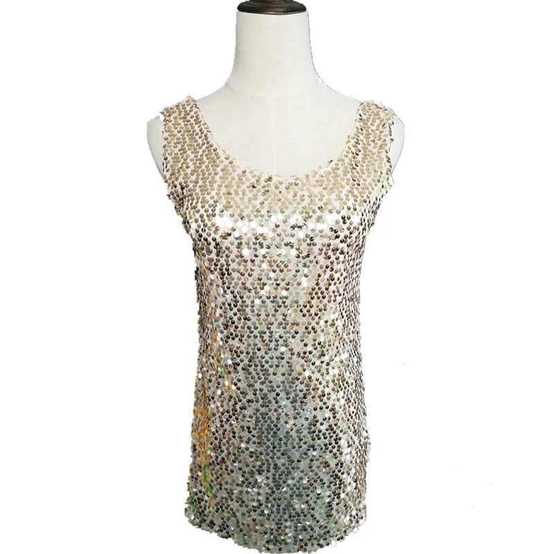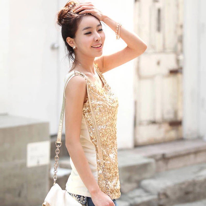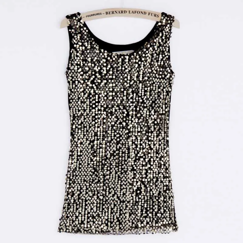 crop top: tank top women summer sequined blingbling sleeveless shirt