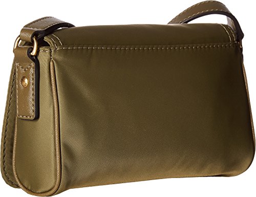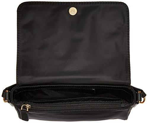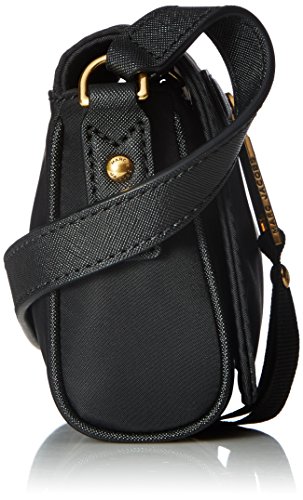 Front exterior zip pocket with decorative pull tab. Brand name hardware in a golden sheen at front. Lined interior features back-wall zip pocket and front-wall slip pocket. Imported. This item may ship with an attached security tag. Merchandise returned without the original security tag attached or a damaged tag may not qualify for a refund. Measurements: Bottom Width: 7 12 in Depth: 1 12 in Height: 5 in Strap Length: 46 in Strap Drop: 23 in Weigh