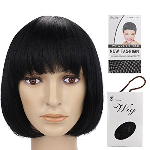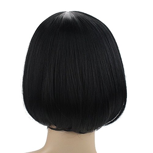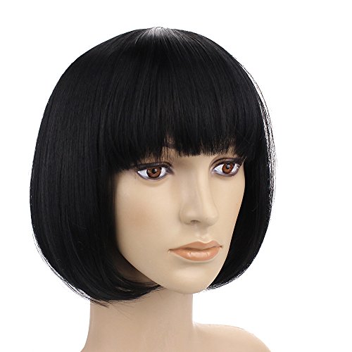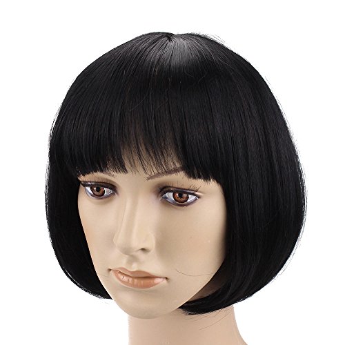 Grammy 11" 150g Straight Flat Bang Bob Black Short Synthetic Cosplay Hair Wig for Women Natural As Real