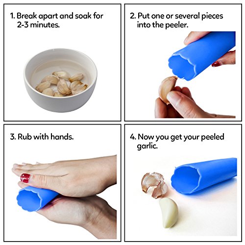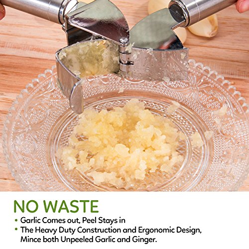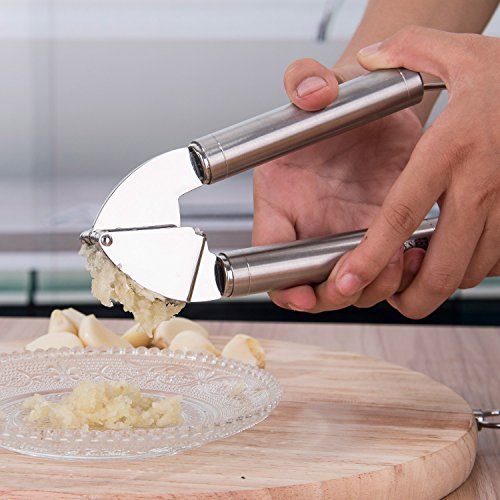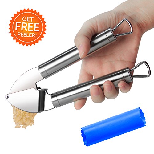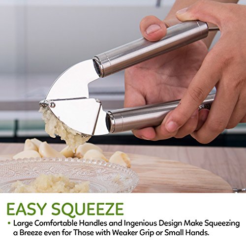SAVORLIVING 304 Stainless Steel Garlic Press with Silicone Garlic Peeler No Rust, Silver (Garlic Press)